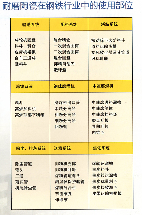 耐磨陶瓷在钢铁行业的使用部位